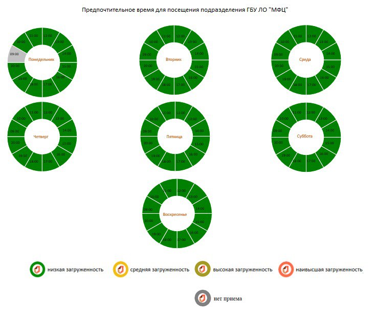 Зеленый – низкая загруженность